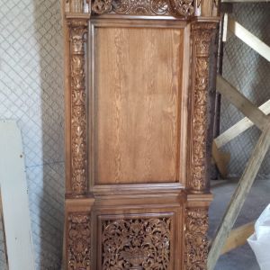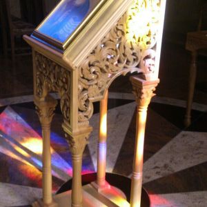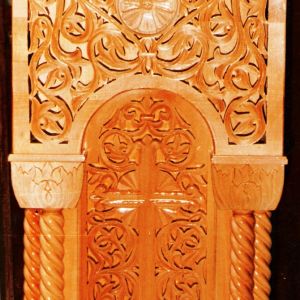 Τα προσκυνητάρια διαθέτουν κλασσική ξυλόγλυπτη κατασκευή. Στο κάτω μέρος υπάρχουν κολώνες δουλεμένες με τέτοιο τρόπο ώστε να δίνεται η αίσθηση της αγκαλιάς. Στον κεντρικό ταμπλά χρησιμοποιείται φυτικός και ζωικός διάκοσμος, ενώ υπάρχει δυνατότητα προσθήκης οποιαδήποτε παράστασης. Ο ουρανός αποτελείται από διάτρητο σκάλισμα και στην κορυφή, πάνω από τον τρούλο, δεσπόζει ο Σταυρός.
